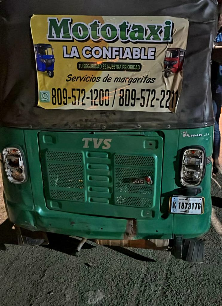 Una de las Margaritas, moto-taxis que poseen tres ruedas y una cabina, fue abandonada en el tramo carretero El Caimito, cuyo conductor, al notar que los miembros del ERD del puesto de chequeo El Guanal lo perseguían, se escondió en unos callejones dejando dicho vehículo con 06 mujeres de nacionalidad haitiana en estatus migratorio irregular.