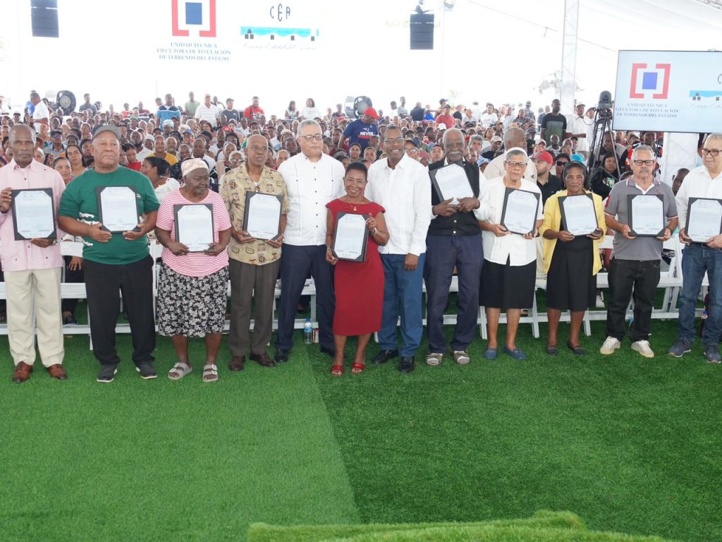 Este acto de entrega de títulos es la primera que realiza el Gobierno en este año, una acción que beneficia a los dominicanos, que contarán con documentos que los acreditan como dueños de terrenos en los cuales levantaron sus hogares y trabajan para garantizar su sustento.