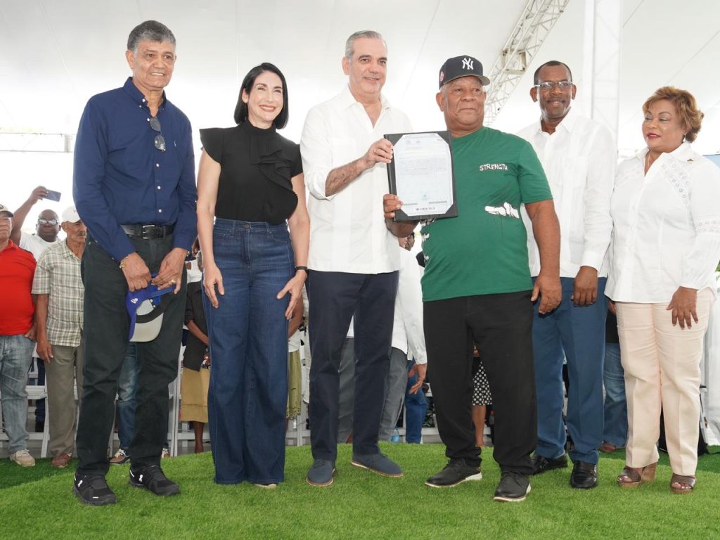 Santo Domingo Oeste, domingo 19 de enero 2025. – El presidente Luis Abinader junto a la primera dama Raquel Arbaje entregó este domingo en el Batey Palavé 708 títulos de propiedad que beneficiarán a 2,832 personas, lo que representa estabilidad, paz y seguridad jurídica para los beneficiarios.