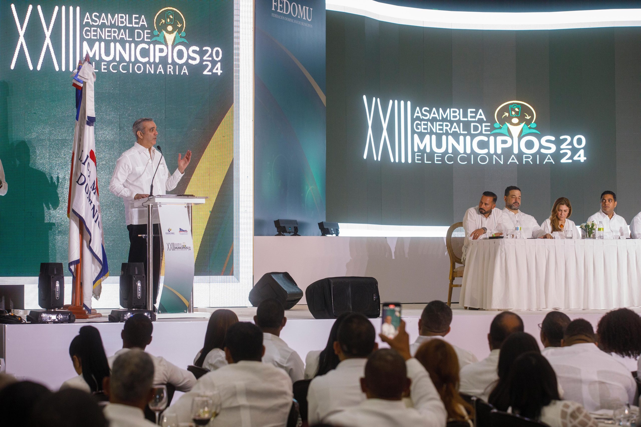 *Punta Cana. -* El presidente Luis Abinader, en apoyo a los gobiernos municipales de todo el país y para seguir elevando las condiciones de vida de todos los dominicanos, reiteró que mantiene las puertas abiertas para trabajar de manera conjunta con todos las alcaldías para que las políticas y servicios públicos lleguen a cada rincón del país con calidad.