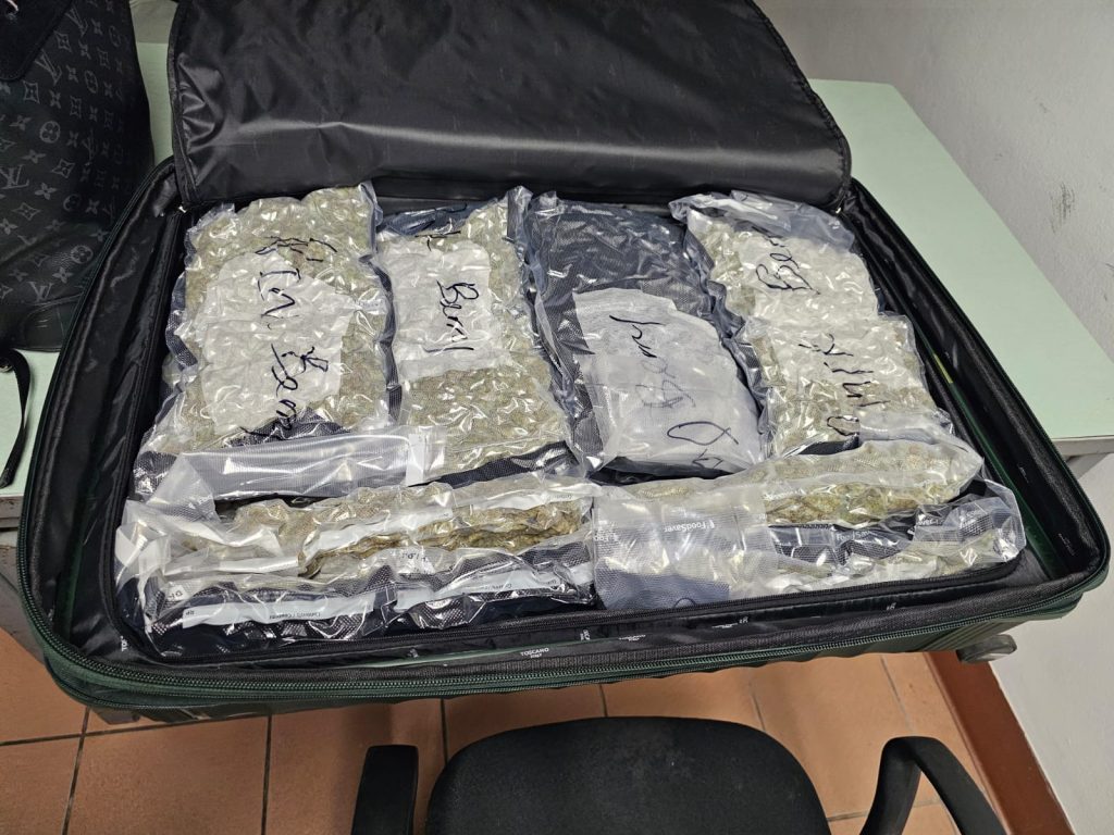 Al inspeccionar la maleta, por instrucciones del fiscal y en presencia del imputado, se ocuparon en su interior 32 paquetes del vegetal, todos envueltos en fundas transparentes, con un peso aproximado a las 35 libras.