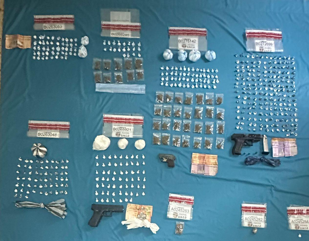 Además se ocuparon 03 armas de fuego, con sus cargadores y varias cápsulas, dos balanzas, 04 celulares, fundas, tijeras, dinero en efectivo y otras evidencias vinculantes con el tráfico y venta de sustancias controladas.