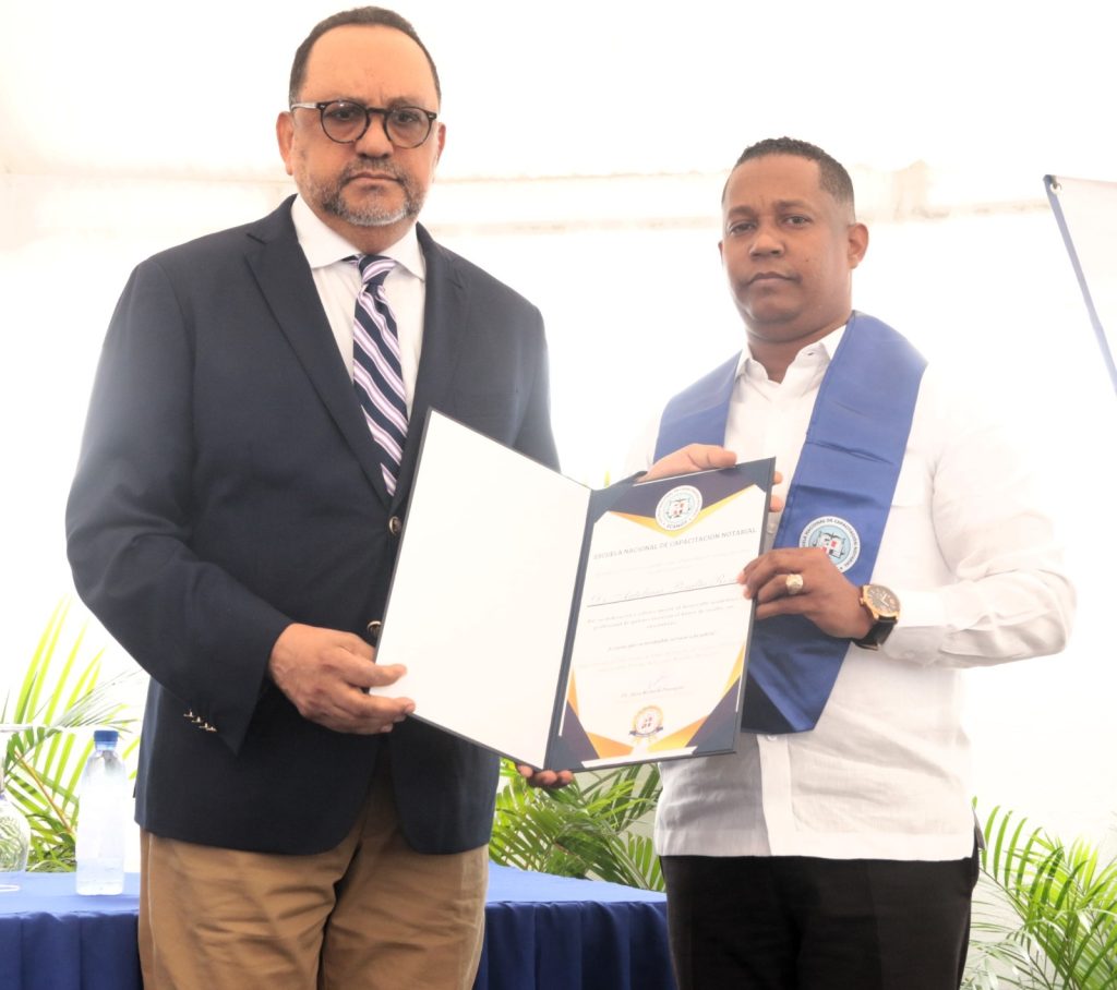 Con esta graduación, el Colegio Dominicano de Notarios, a través de Ecanot, reafirmó su compromiso con la capacitación permanente y la profesionalización del notariado dominicano, como eje fundamental para el fortalecimiento institucional y la calidad del servicio a la ciudadanía, resaltó Jhon Richard Paniagua.