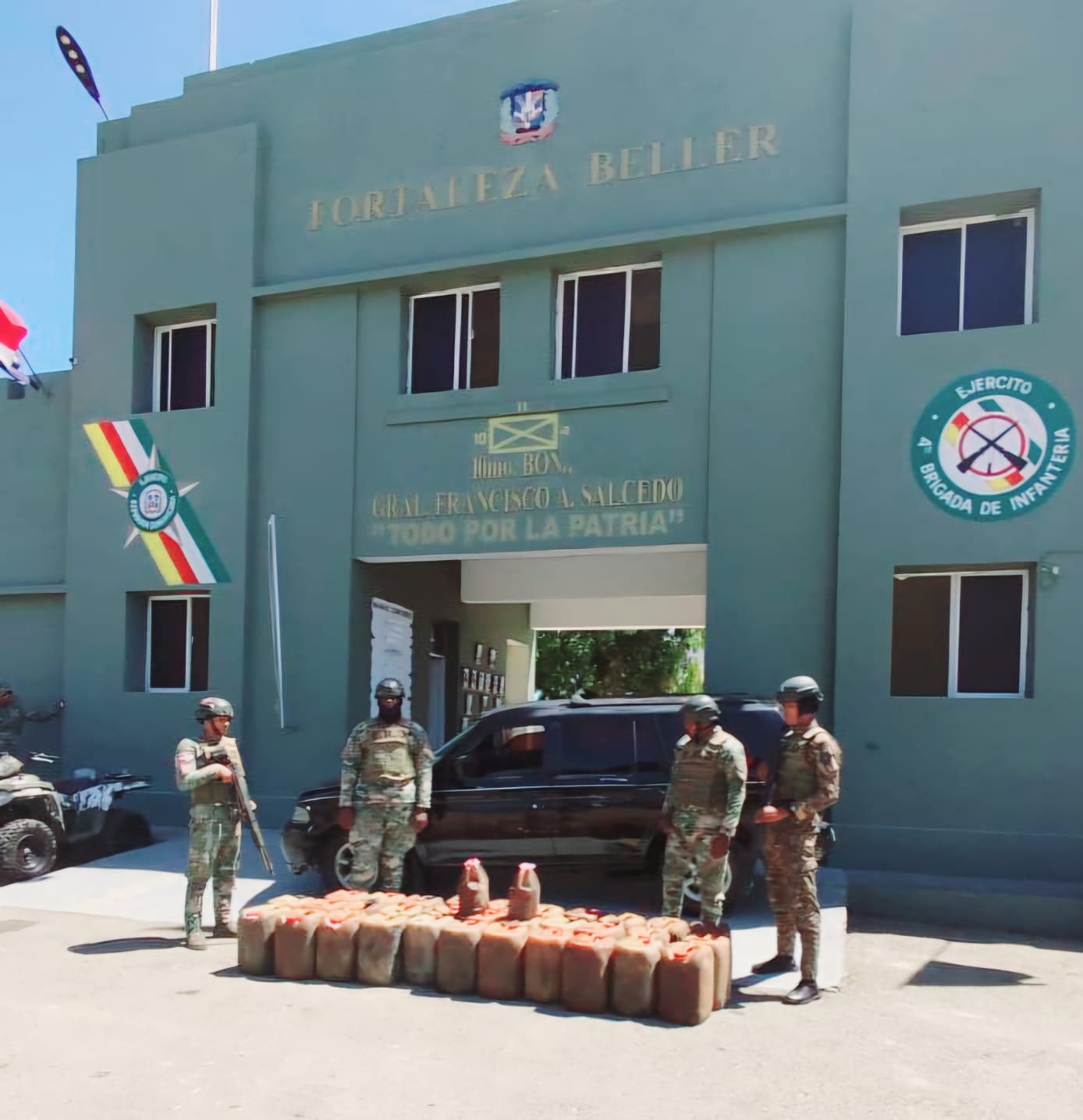 Dajabón. – Miembros del Ejército de República Dominicana incautaron 32 garrafones de gasolina en una jeepeta, cuyo conductor emprendió la huida, al notar la presencia militar, en el tramo Don Miguel Pista-Don Miguel Corral, en el sector de Los Miches.