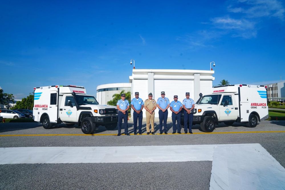 Ministerio de Defensa, a través de la Industria Militar Dominicana, entrega cuatro ambulancias todo terreno al CESAC para fortalecer la seguridad aeroportuaria nacional