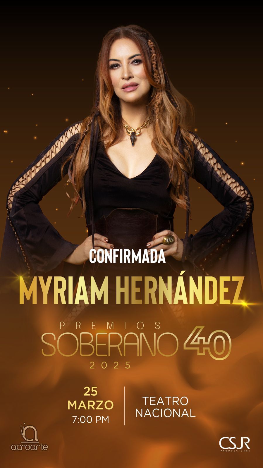 «La participación de Myriam Hernández en los Premios Soberano es un verdadero honor para nuestra celebración de 40 años. Ella es un artista que ha conquistado los más importantes escenarios de Latinoamérica, cuya trayectoria la llevado a consagrarse como ‘La Baladista de América’», comentó Wanda Sánchez, presidente de Acroarte.