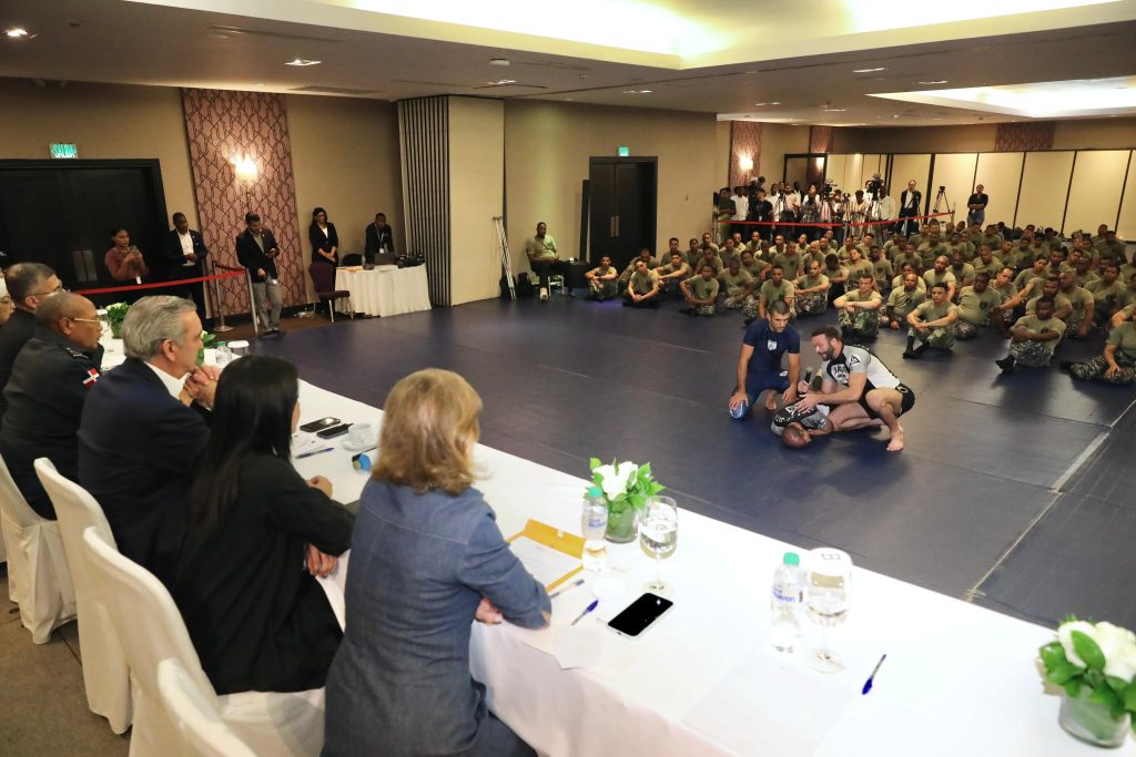 Agradeció y felicitó al grupo de Gracie University por su excelente entrenamiento, así como a la Policía Nacional y a los agentes participantes del programa, quienes, afirmó, han demostrado disposición y rapidez en el aprendizaje, al tiempo que, resaltó que ahora ellos tienen la responsabilidad de convertirse en entrenadores y multiplicadores de estas prácticas dentro del cuerpo policial dominicano. Reconoció que, aunque los indicadores muestran avances, aún queda mucho por mejorar y aprender.