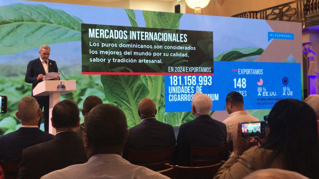 *Santo Domingo.-* El presidente Luis Abinader destacó este lunes que el tabaco dominicano es sinónimo de empleo, exportación y orgullo nacional, ya que sus ventas anuales superan los US$1,340 millones y representa ya el 10 % de todas las exportaciones del país, posicionándose como el tercer producto más importante después del oro y los insumos médicos.