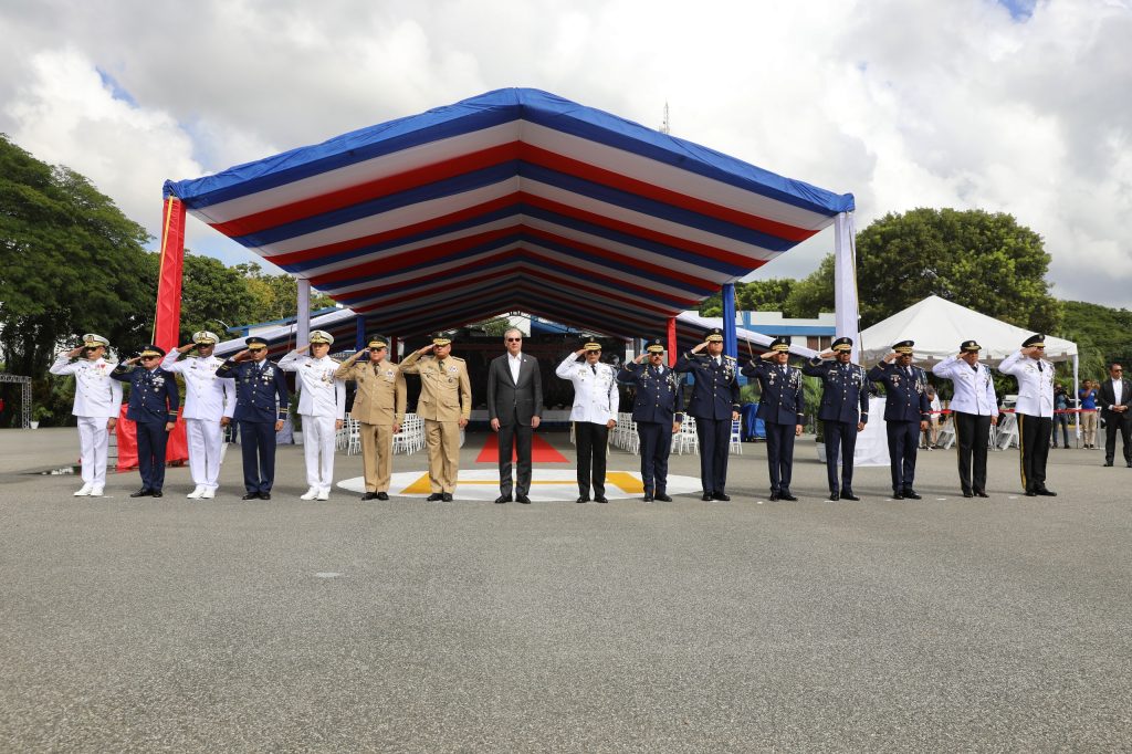 El jefe de Estado estuvo acompañado por los ministros de Defensa, teniente general Carlos Antonio Onofre Fernández; de Educación Superior, Ciencia y Tecnología, Franklin García Fermín; del viceministro de Seguridad Interior, Antonio Palma en representación de la ministra de Interior y Policía, Faride Raful; el director general de la Policía Nacional, mayor general Ramón Antonio Guzmán Peralta y el subdirector general de la institución, general Juan Hilario Guzmán Badia.