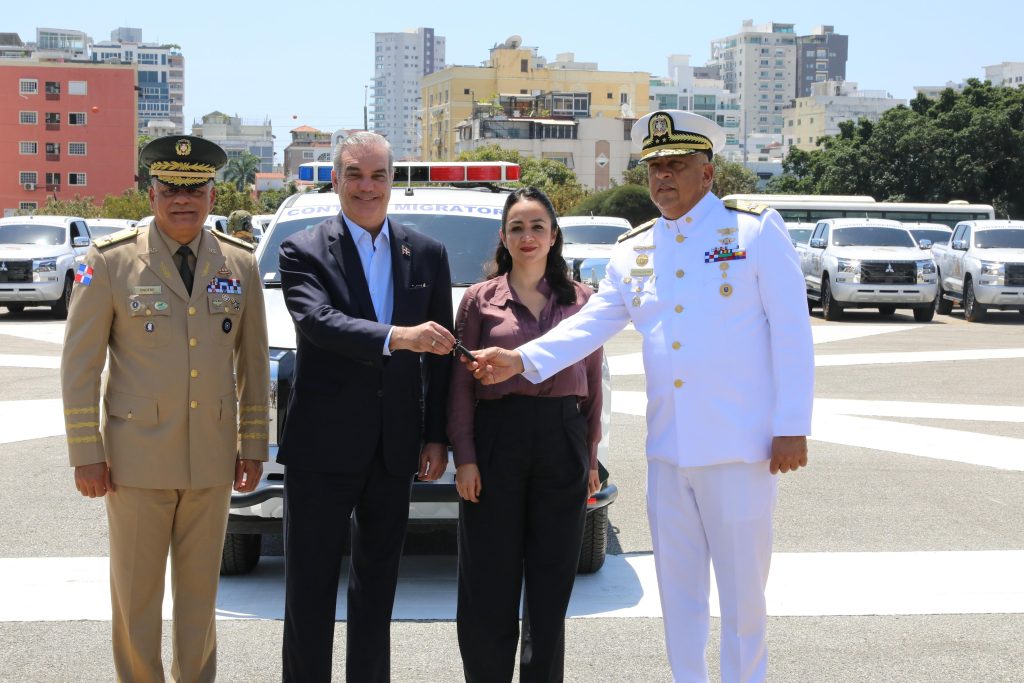 Al concluir la ceremonia de graduación, el mandatario hizo entrega de 60 nuevas camionetas que inmediatamente serán integradas a labores de interdicción y deportación de extranjeros en condición irregular.
