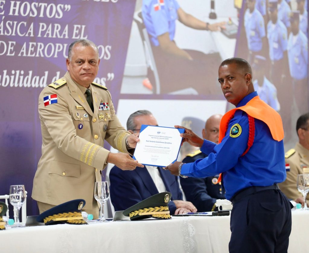 Durante la solemne ceremonia, el presidente de la República tomó juramento a los nuevos agentes, quienes culminaron con éxito un proceso formativo orientado a fortalecer la seguridad de la aviación civil en la República Dominicana. El acto reunió a autoridades civiles y militares, miembros del Estado Mayor General de las Fuerzas Armadas, representantes del sector aeronáutico nacional e internacional, así como familiares de los graduandos.