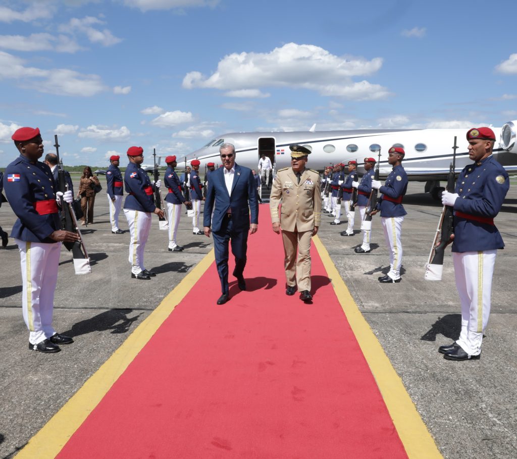 El jefe de Estado regresó por la Base Aérea de San Isidro y fue recibido por el ministro de Defensa, teniente general Carlos Antonio Fernández Onofre; el comandante general de la Fuerza Aérea de la República Dominicana, mayor general piloto, Floreal Suárez Martínez y los comandantes de la Guardia Presidencial, general de brigada Guillermo Caro Cruz y del Regimiento de la Guardia de Honor, teniente coronel Paula Fernández Jiménez.
