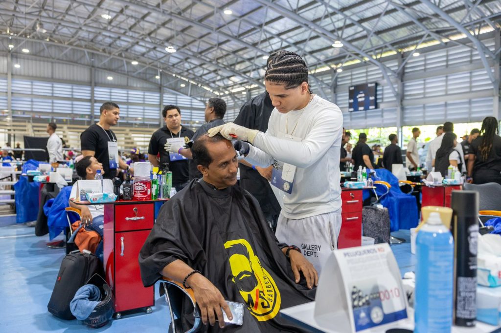 Durante la actividad celebrada en el Polideportivo Nuevo Domingo Savio, el mandatario compartió de manera cercana con estos profesionales como gesto de respaldo y cercanía con el sector, recibió un recorte de cabello realizado por Billy Núñez, quien ejerce la profesión desde hace más de cinco décadas, resaltando el valor del oficio y su vínculo directo con la comunidad.